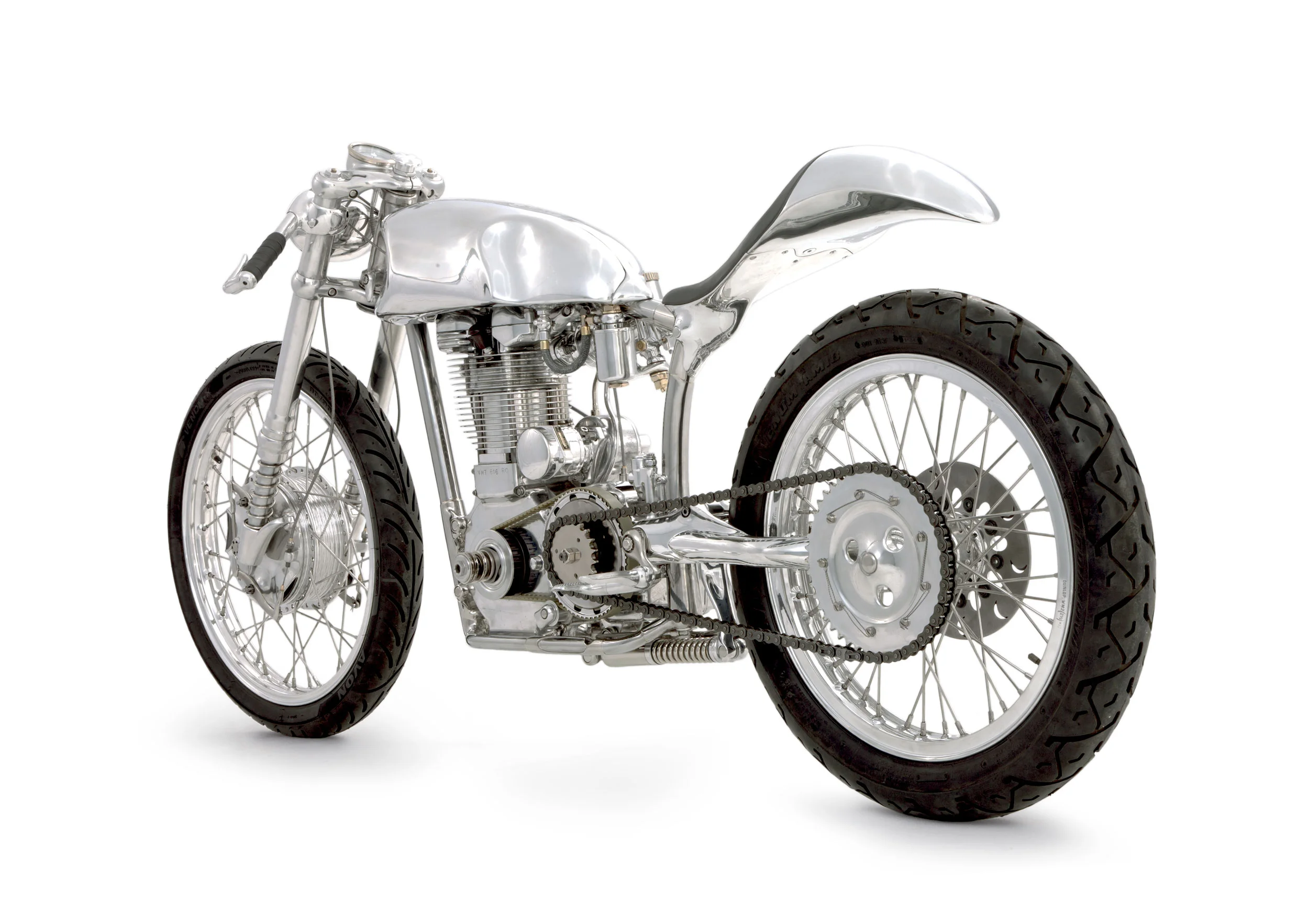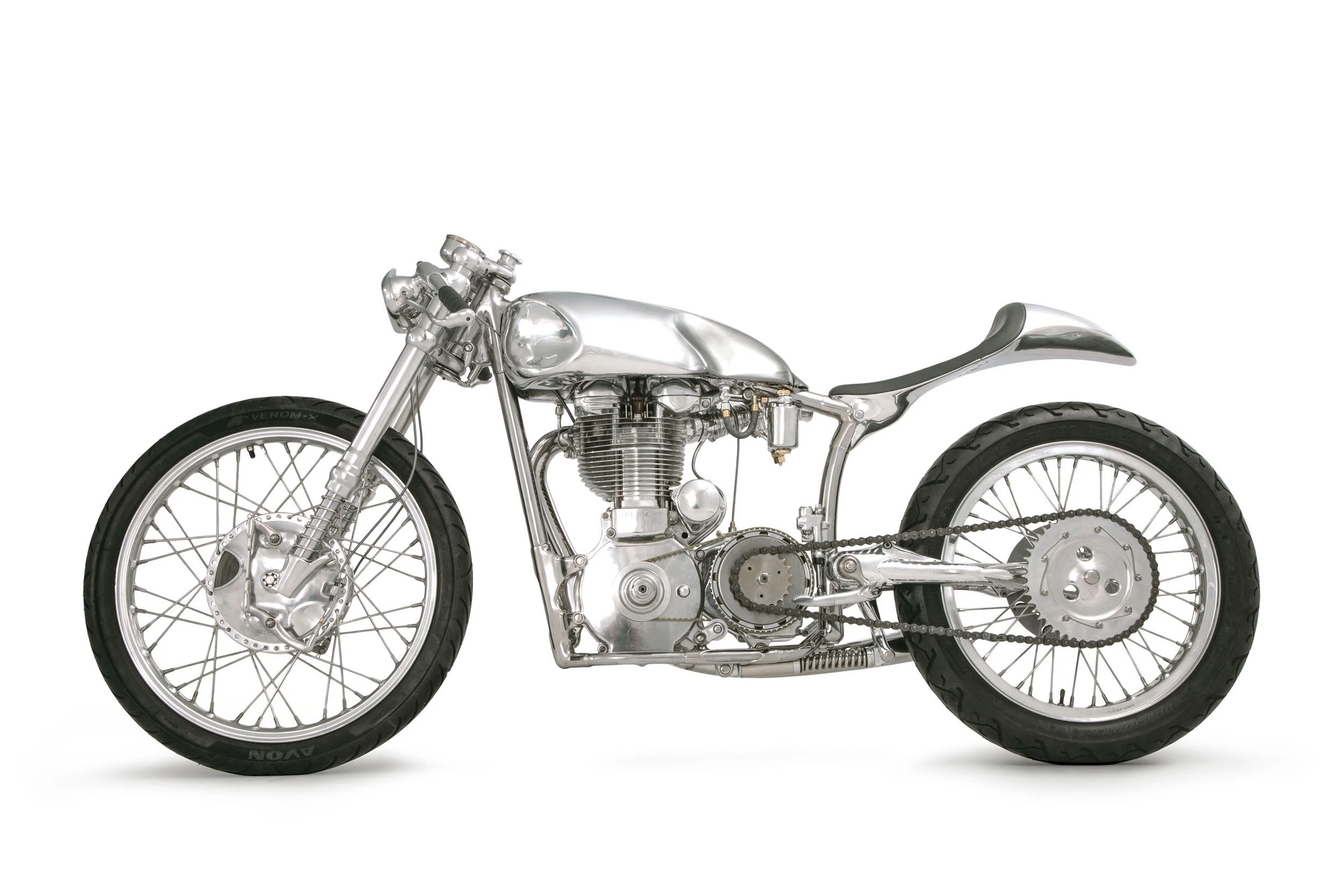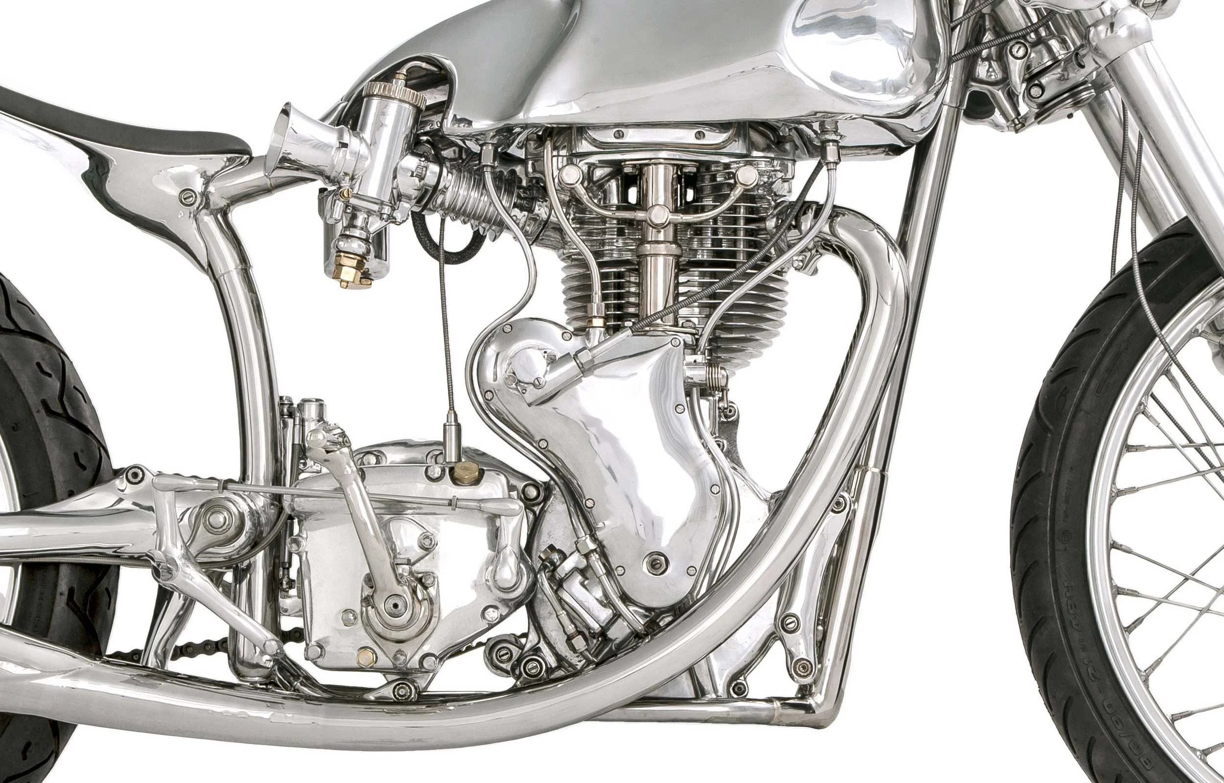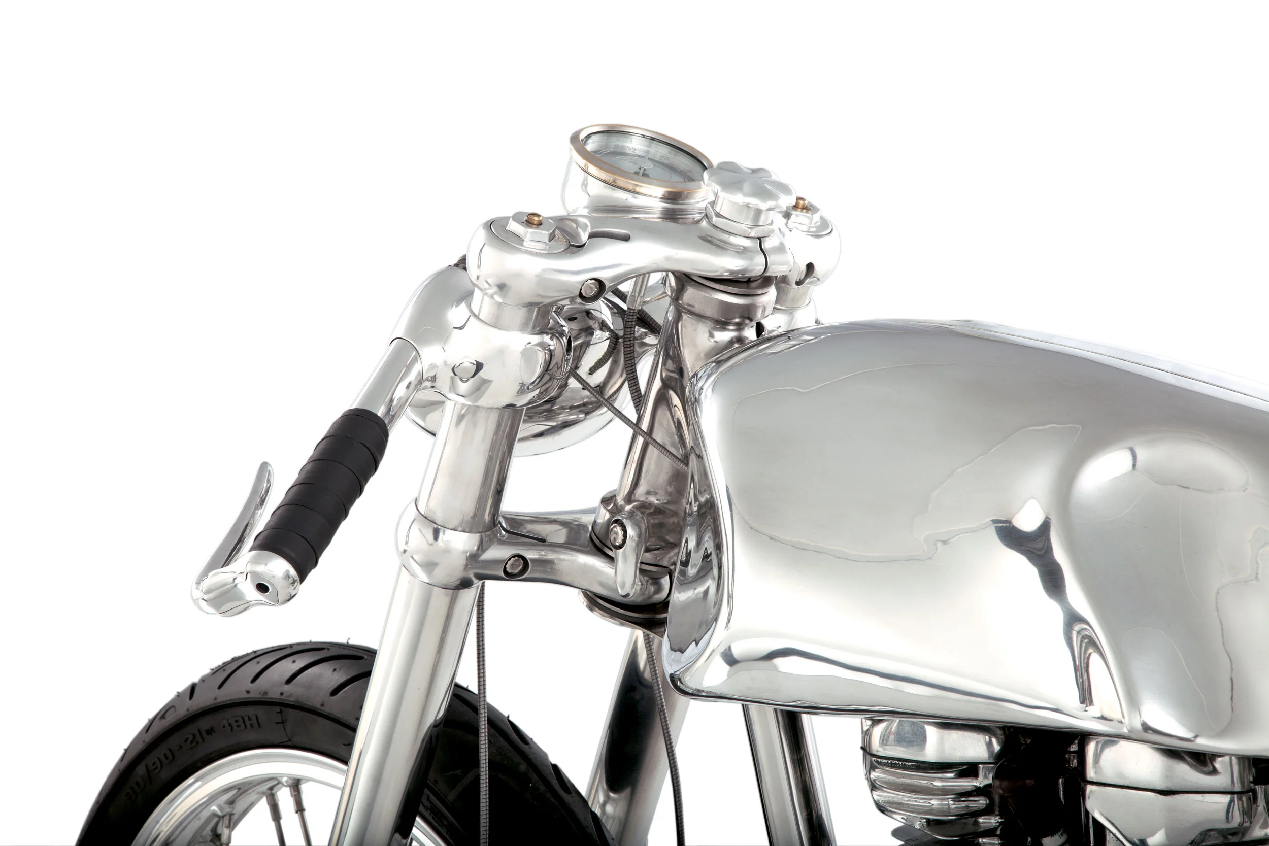 At the heart of The White is a documented factory racing 1967 Velocette Venom Thruxton engine, an ultra-rare 'squish head', which has been massaged internally and polished externally.